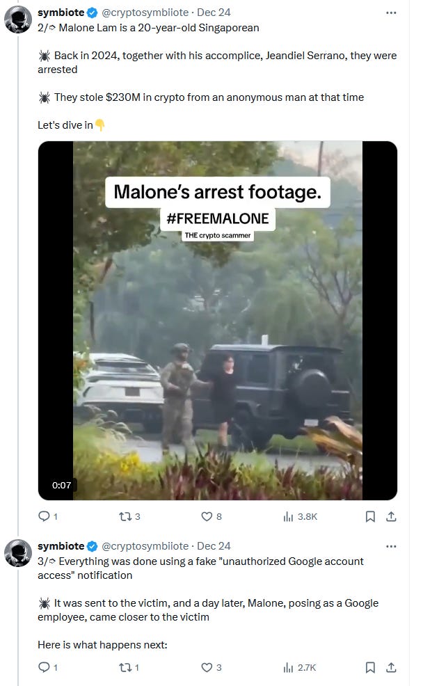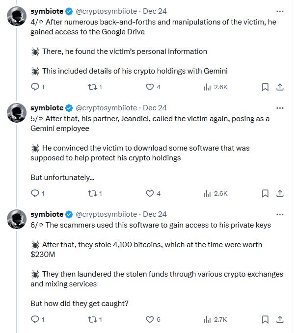 20 Year Old Scammed 4100 Bitcoin ($385.4M)By @cryptosymbiiotePleb UndergroundDec 30, 202441ShareShareThanks for reading Pleb Underground! Subscribe for free to receive new posts/Subscribe»»»»»» Twitter | Youtube | Citadel21 | PlebUnderground Swag Shop »»»»»»PreviousNext
