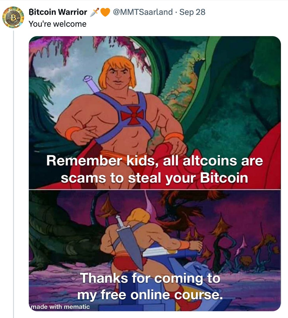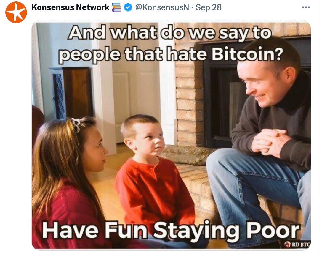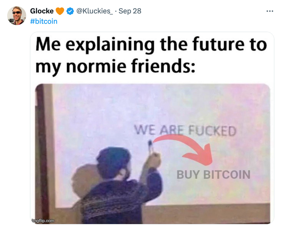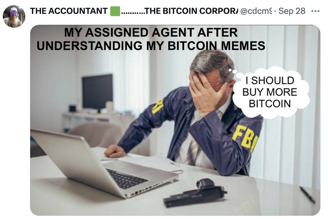 Dope Bitcoin MemesBy @PlebUnderground - Compilation Volume 108Pleb UndergroundOct 01, 202451ShareShareThanks for reading Pleb Underground! Subscribe for free to receive new posts.Subscribe»»»»»» Twitter | Youtube | Citadel21 | PlebUnderground Swag Shop »»»»»»PreviousNext