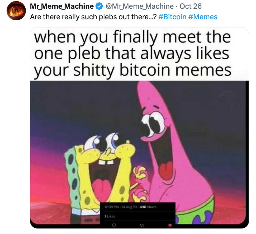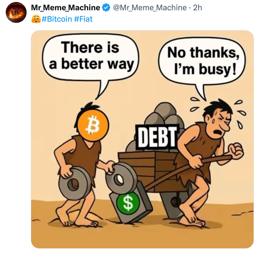 Dope Bitcoin MemesBy @PlebUnderground - Compilation Volume 155Pleb UndergroundOct 29, 202541ShareShareThanks for reading! Subscribe for free to receive new posts.Subscribe»»»»»» Twitter | Youtube | Citadel21 | PlebUnderground Swag Shop »»»»»»PreviousNext