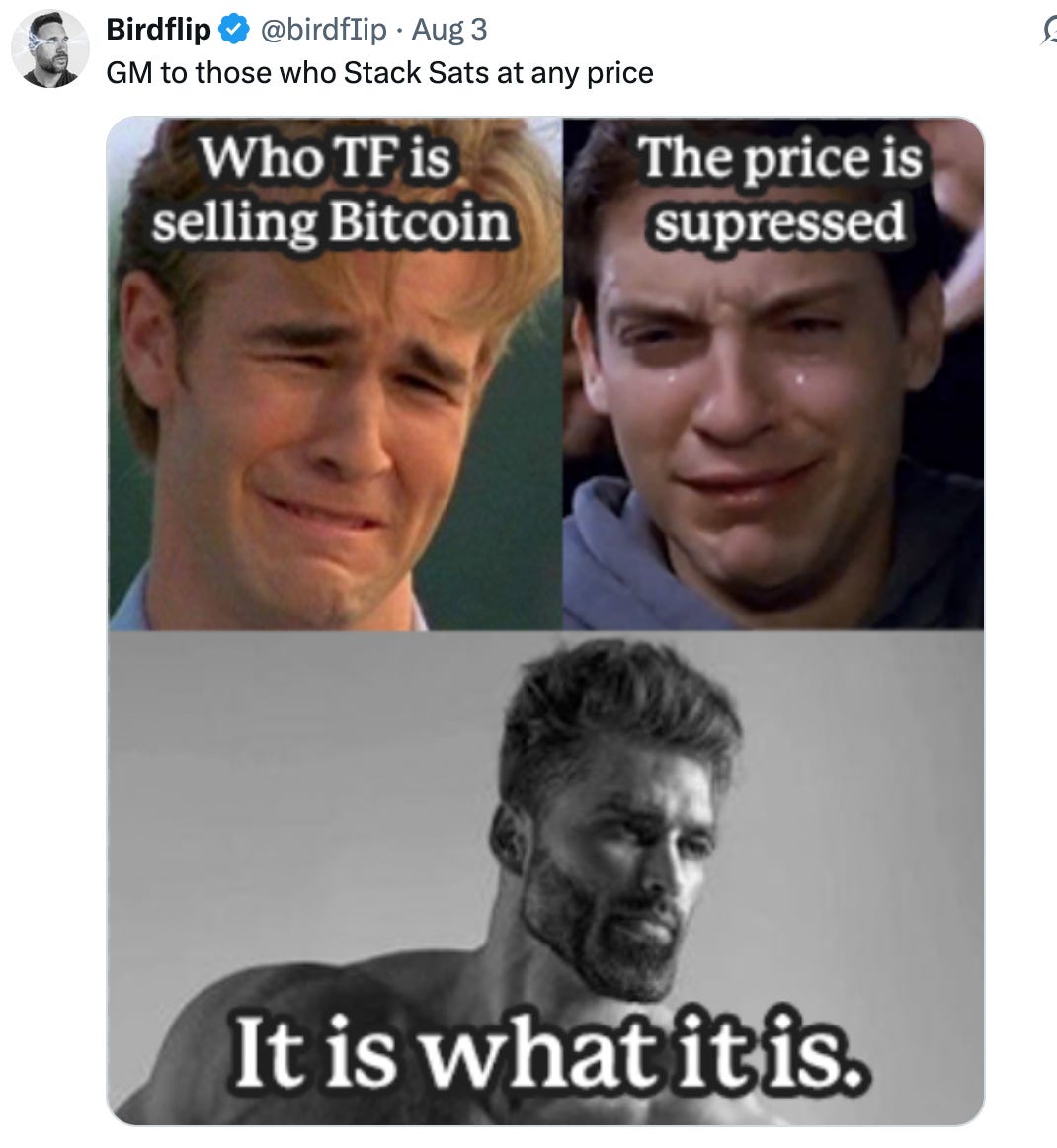 Dope Bitcoin MemesBy @PlebUnderground - Compilation Volume 145Pleb UndergroundAug 05, 20251ShareShareThanks for reading! Subscribe for free to receive new posts.Subscribe»»»»»» Twitter | Youtube | Citadel21 | PlebUnderground Swag Shop »»»»»»PreviousNext