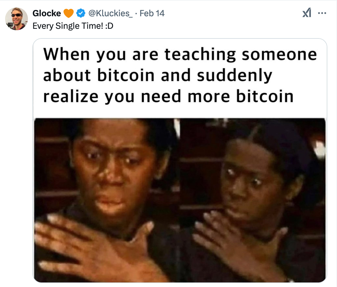 Dope Bitcoin MemesBy @PlebUnderground - Compilation Volume 124Pleb UndergroundFeb 18, 202552ShareShareThanks for reading Pleb Underground! Subscribe for free to receive new posts.Subscribe»»»»»» Twitter | Youtube | Citadel21 | PlebUnderground Swag Shop »»»»»»PreviousNext