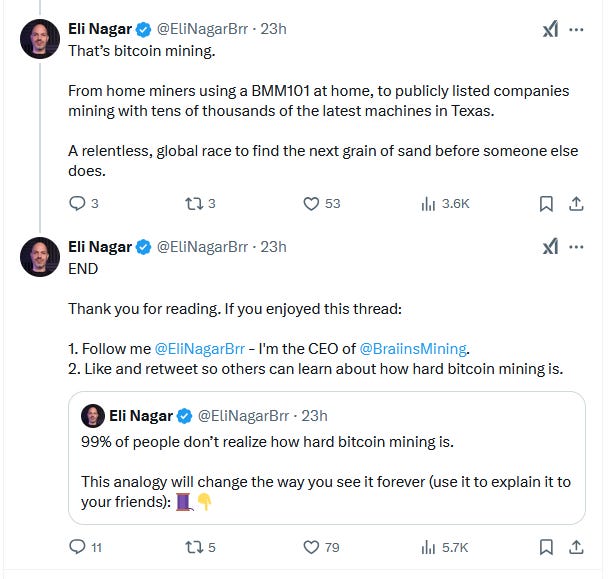 Explaining Bitcoin MiningBy @EliNagarBrrPleb UndergroundFeb 06, 2025211ShareShareThanks for reading Pleb Underground! Subscribe for free to receive new posts.Subscribe»»»»»» Twitter | Youtube | Citadel21 | PlebUnderground Swag Shop »»»»»»PreviousNext